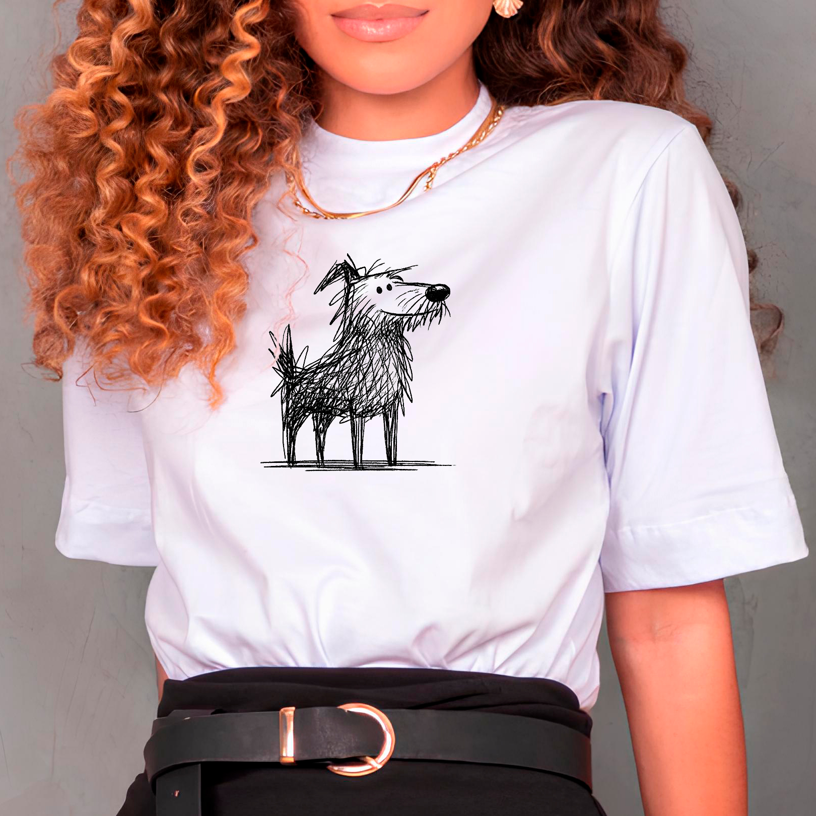 Camiseta cachorro rabiscado aventureiro narigudo é a peça perfeita para quem tem alma de explorador e coração de amante de doguinho. A estampa traz um cachorro magrelinho, peludo e de focinho comprido, todo feito em traços riscados, em estilo sketch, bem no centro do peito em tamanho próximo a um A4. Ele está em pé, com aquele jeito de quem já sentiu cheiro de aventura e está pronto para o próximo rolê.