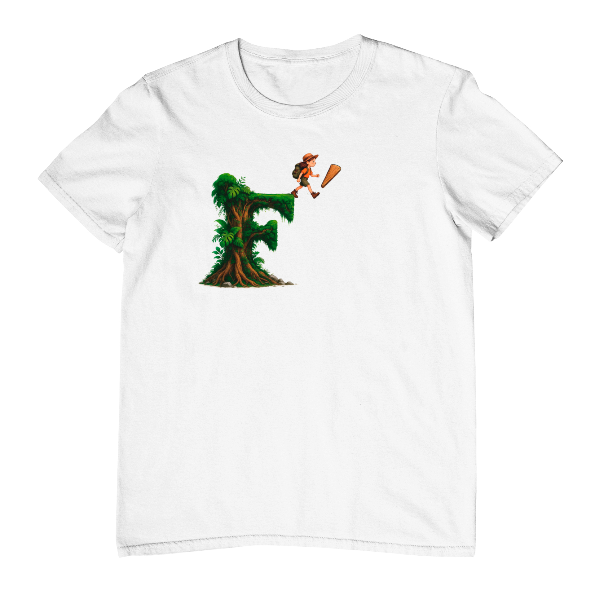 Camiseta fé é para quem acredita em dar um passo de confiança mesmo quando o caminho ainda não apareceu inteiro. A estampa traz uma árvore em forma de “F”, com um viajante caminhando sobre o galho e seguindo em frente, como quem escolhe confiar e continuar. É uma imagem silenciosa, mas cheia de significado, perfeita para quem gosta de carregar a fé de forma discreta e poética.